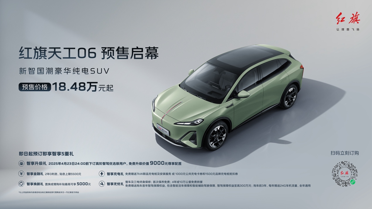 天工06定位新智國潮豪華純電SUV,除搭載了與天工05相同的司南智駕系統(tǒng)和靈犀座艙外,還配備了專屬超級適時智能四驅(qū)系統(tǒng),擁有毫秒級的四驅(qū)介入響應(yīng),既可為用戶提供卓越的四驅(qū)駕乘體驗,又能讓用戶享受兩驅(qū)的極低電耗。此次紅旗品牌智能體驗日天工06正式開啟預(yù)售,預(yù)售價格18.48萬元起,并帶來豐厚的“智享五重禮”預(yù)訂權(quán)益。