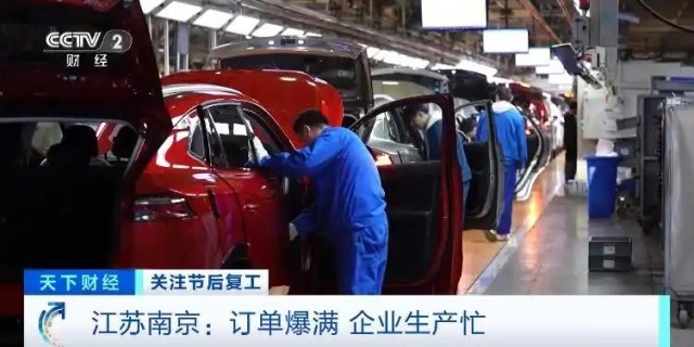 春節(jié)假期剛過,江蘇南京的智能制造產(chǎn)業(yè)園里,自動化產(chǎn)線高速運轉(zhuǎn),工人們穿梭忙碌,企業(yè)訂單爆滿。 多個班組趕訂單 車企產(chǎn)線忙不停 在南京市江北新區(qū)的一家大型汽車生產(chǎn)企業(yè),其中一個車間面積4萬平方米,產(chǎn)線從腳下延伸到了頭頂,工作人員正在緊張忙碌著,一輛輛嶄新的汽車高效地走向流水線。這里每天可以生產(chǎn)汽車1000輛左右。一些剛剛上市的新款新能源汽車產(chǎn)品,銷售非?;鸨?,訂單已經(jīng)排到了今年下半年。正月初五這里已經(jīng)全員在崗趕訂單。這個車間,每天兩個班組,1200多名工人日夜在崗,這個數(shù)字是去年春節(jié)同期的2.5倍。