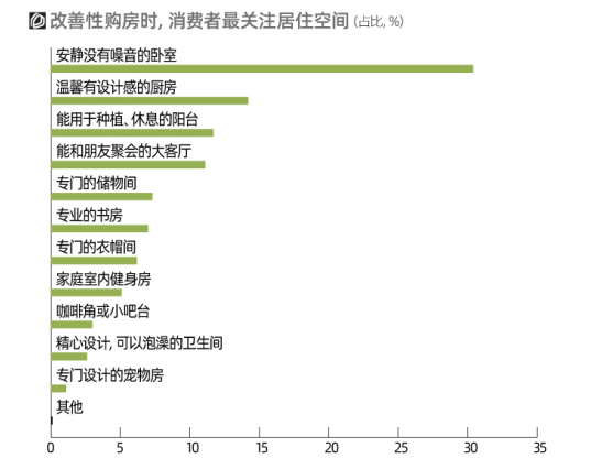 《報告》發(fā)現(xiàn):消費者在住房消費領(lǐng)域需求變化呈現(xiàn)出“在居住空間方面,追求個性化、審美化、輕奢化等”;“在居住生活品質(zhì)方面,需求從房屋本身向社區(qū)配套、鄰里關(guān)系等外部延展”等特點。