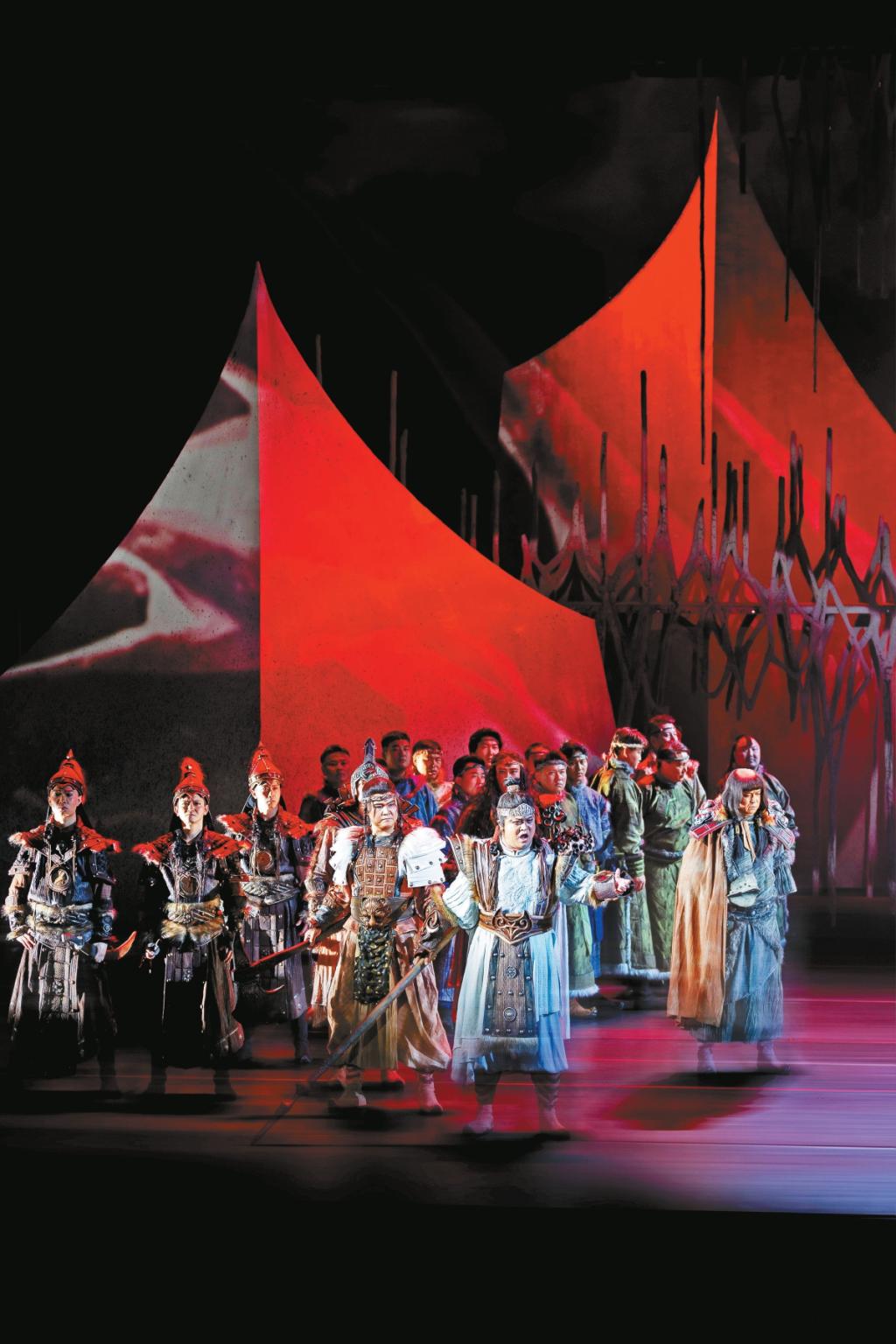 歌劇達到的高度往往和整個歌劇制作流程的規(guī)范是分不開的。一部歌劇要想把作曲家的樂譜轉(zhuǎn)化成完整的演出呈現(xiàn)在舞臺上,需要經(jīng)歷做音樂作業(yè)、坐排、合成等數(shù)個環(huán)節(jié)。作為舞臺領域的專家,陳蔚與地方合作的時候,都不遺余力地推廣科學的演出制作流程。在排演內(nèi)蒙古藝術劇院的首部歌劇《江格爾》時,陳蔚從給演員上戲劇表演、形體集訓課開始,一點點地將科學的流程蘊含在日常的工作中,對當?shù)氐谋硌蓐犖楹湍缓髨F隊進行了系統(tǒng)培養(yǎng)?!耙钊胪诰蛎總€演出團體的藝術特長,真正站在地方院團的角度打造劇目,發(fā)揮其特長,彌補其不足?!标愇当硎?,唯有充分調(diào)動各方力量,減輕地方負擔,讓作品越演越有價值,才能真正留下精品。