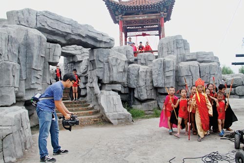 8月18日,原平市白路口才主持藝術班的小學員出演的魔幻微電影《大戰(zhàn)紅孩兒》在該市牛臥河公園開機。此次演出活動目的是培養(yǎng)孩子的想象力、幽默感,同時提高他們在演藝方面的能力與藝術修養(yǎng),讓他們擁有積極健康的心態(tài),敢于表現(xiàn)自我、挑戰(zhàn)自我、超越自我,在生活、學習上打下良好基礎。據(jù)了解,影片制作完成后將在優(yōu)酷等網(wǎng)絡進行播放。 圖為攝影現(xiàn)場。(褚震 攝) (責任編輯:武丹) |