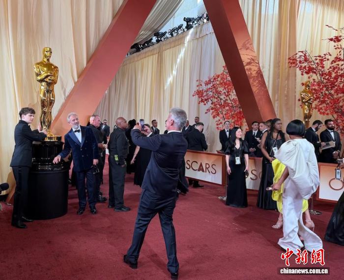 當(dāng)?shù)貢r間3月15日,第98屆奧斯卡獎頒獎典禮在美國好萊塢杜比劇院舉行。圖為嘉賓走紅毯并與奧斯卡金像合影。 中新社記者 張朔 攝