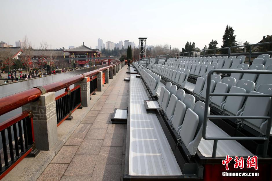 2月18日,在大雁塔音樂噴泉廣場南側高臺,臨近噴泉處皆被護欄圍起并禁止行人進入,護欄內擺放了300余個座位,費用為30元每人。據(jù)了解,大雁塔音樂噴泉自2003年建成后,免費向游客開放,每年吸引大量游人。