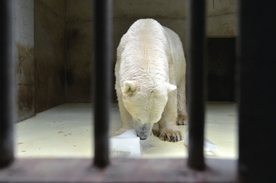 一般氣溫達到35度以上時,動物園飼養(yǎng)部門還將向北極熊、棕熊、小熊貓、金絲猴、大猩猩等重要場館運送冰塊,每塊冰大概凈重20-30斤左右,需要提前三天在冰庫中冷凍,一次性送冰8-10塊。同時為北極熊館配備冰箱,飼養(yǎng)員可隨時冷凍冰塊給動物食用。