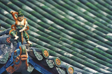 洪洞廣勝寺飛虹塔是我國(guó)最大最完整的一座琉璃塔,歷經(jīng)500年依舊流光溢彩。圖為飛虹塔底層回廊東南翼角武士?jī)嗁は瘛?/span>