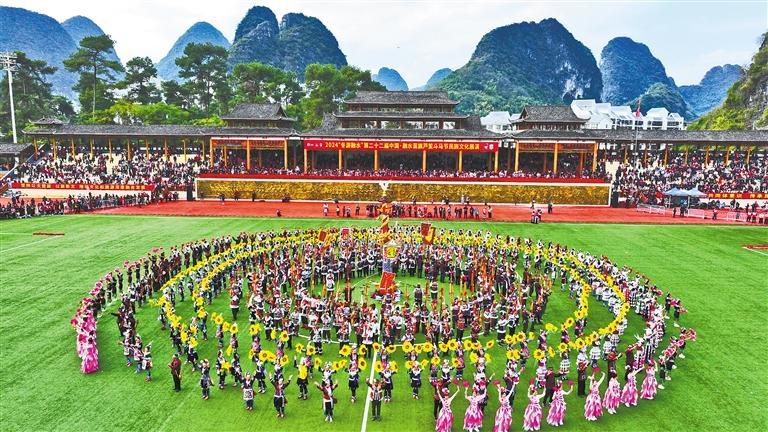 11月23日,廣西柳州市融水苗族自治縣民族體育公園,群眾身著盛裝參加民族文化展演活動,吸引了八方游客。黎寒池攝(中經(jīng)視覺)
