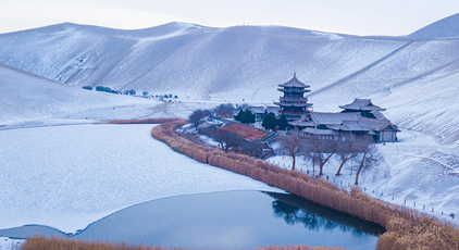 甘肅敦煌:雪落大漠景如畫