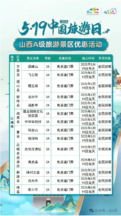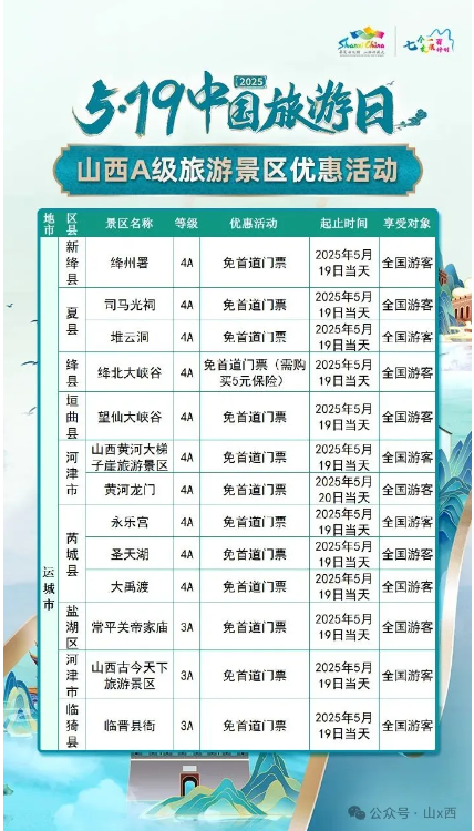 5·19中國旅游日 | 山西A級旅游景區(qū)面向全國游客優(yōu)惠