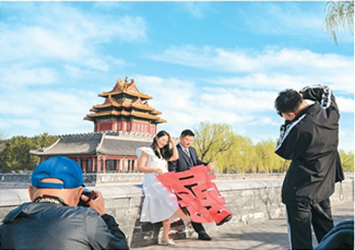 “今年訂單量明顯上升,其中不少咨詢檔期的客人是外地的?!痹诒本氖骂I(lǐng)證跟拍、婚禮紀(jì)實拍攝的獨立攝影師劉璐璐告訴記者,西城區(qū)等婚姻登記處由于毗鄰故宮、景山公園等文旅地標(biāo),相對更加“出片”,受到新人們的青睞,“有一對廣東來的情侶領(lǐng)完證后開玩笑說,他們是來北京旅游的,順便結(jié)了個婚?!眲㈣磋凑f。