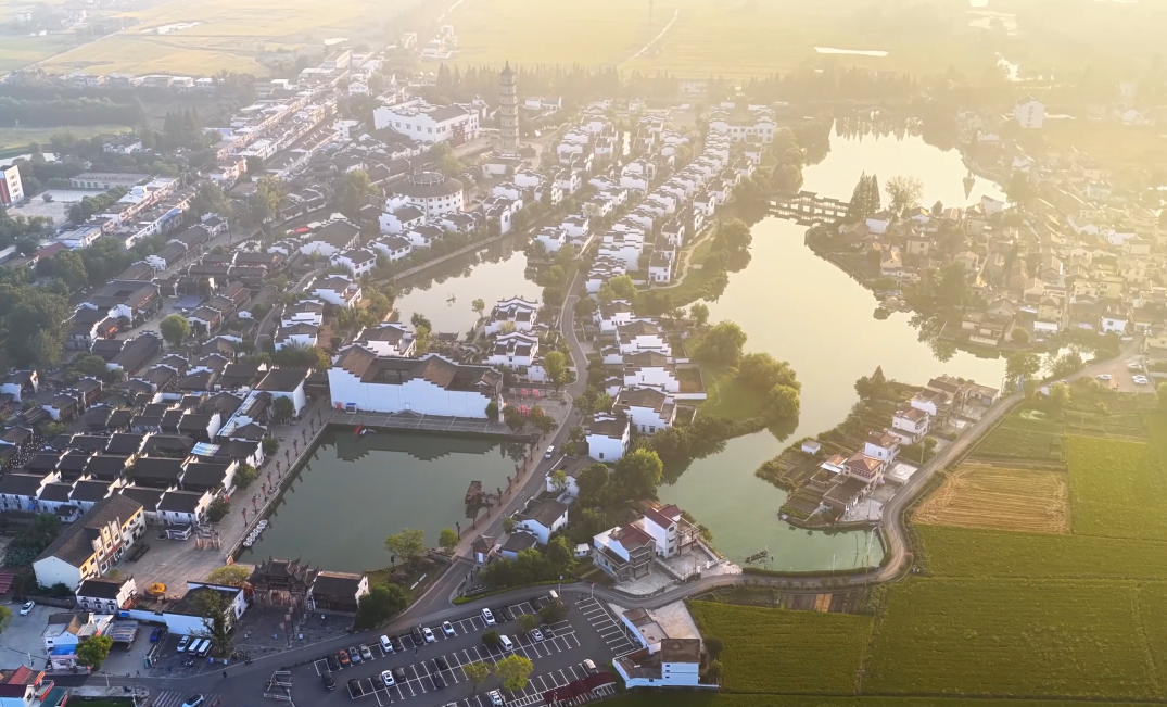 ?秋日清晨,位于安徽省銅陵市的犁橋水鎮(zhèn)在晨霧中蘇醒。放眼望去,白墻黛瓦的徽派民居錯(cuò)落有致,與湖畔倒影、街旁的金色稻田共同構(gòu)成一幅和諧的江南秋景圖。