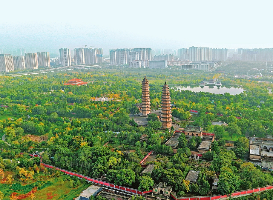 10月13日,秋日的太原市雙塔公園層林盡染,色彩斑斕。雙塔巍峨聳立,湖水澄澈如鏡,園內(nèi)步道蜿蜒,盡顯秋日的詩(shī)意與靜謐。