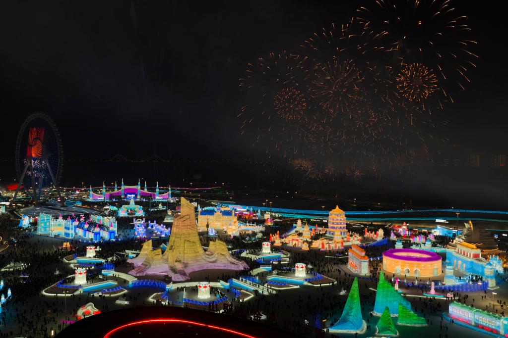 1月5日17時許,松花江北岸,夜空被璀璨的煙火點亮。在零下十幾攝氏度的嚴(yán)寒中,第42屆中國·哈爾濱國際冰雪節(jié)在哈爾濱冰雪大世界啟幕!