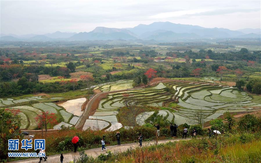 2月20日,游客在昌江霸王嶺觀賞木棉花。早春時節(jié),海南省昌江黎族自治縣的木棉花競相綻放,吸引大批游客前來踏春賞花。 新華社記者 郭程 攝