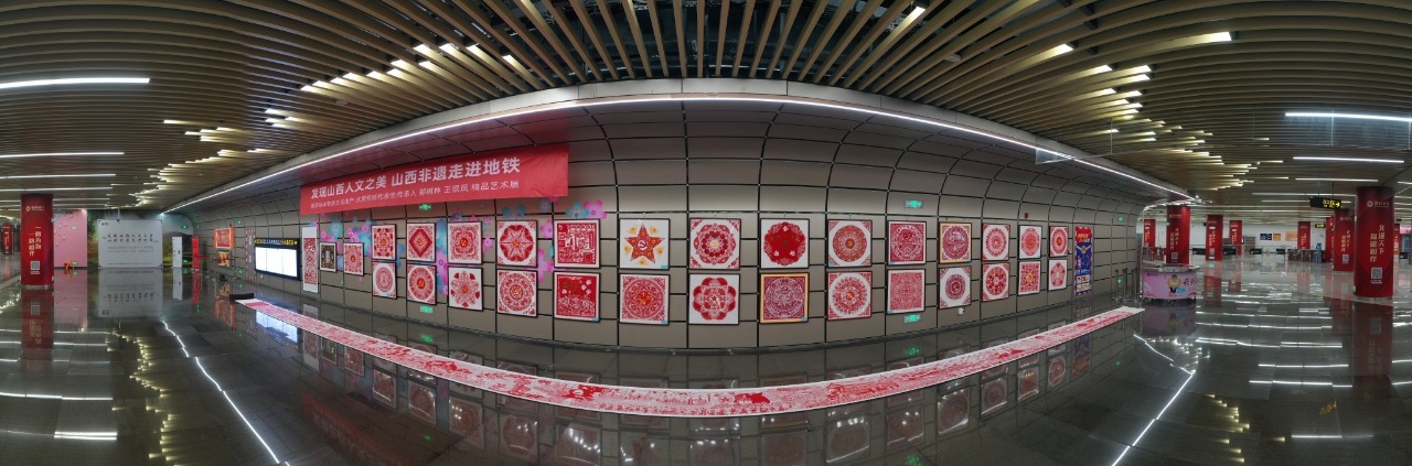 國家級非物質(zhì)文化遺產(chǎn)代表性項(xiàng)目太原剪紙?jiān)谔罔F2號線長風(fēng)街站展示。井宇豪 攝