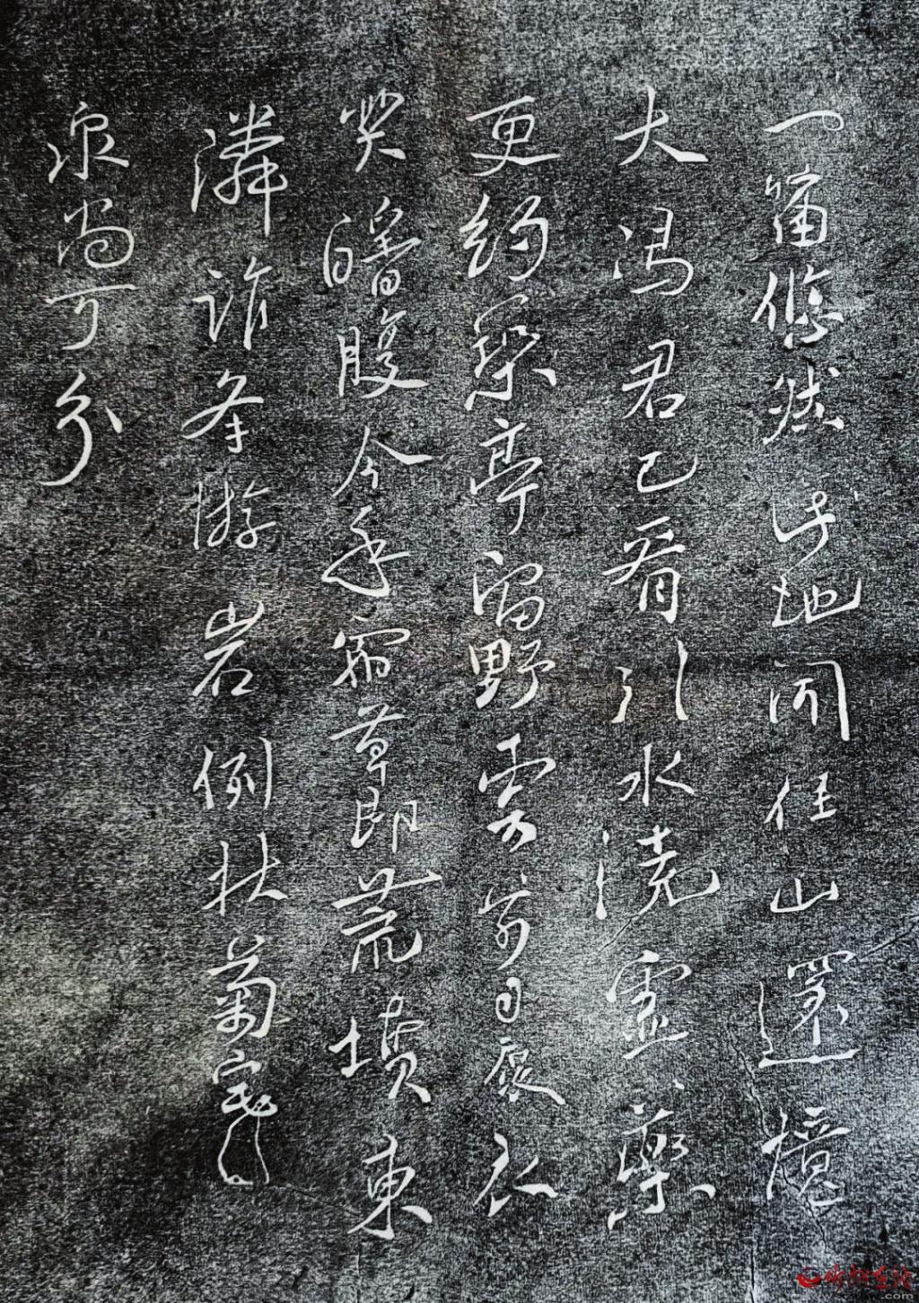 凡拜謁過(guò)野史亭的人,都曾看到過(guò)亭壁上所嵌的遺山先生像和五塊詩(shī)文石刻。石刻均有小字作注,尤其西壁的一塊上竟刻著500余字,因空間狹窄,刻痕甚淺,一些字跡已難辨識(shí)。幸運(yùn)的是該石拓片背面筆痕十分明顯,于是筆者就著燈光將這段文字全部抄錄下來(lái),得以了解亭中每塊石刻的詳細(xì)信息。