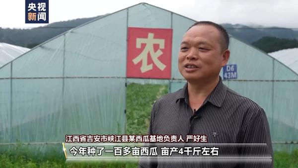 江西省吉安市峽江縣某西瓜基地負責人 嚴好生:今年種了一百多畝西瓜,畝產(chǎn)4千斤左右,預計總產(chǎn)值在40萬以上。