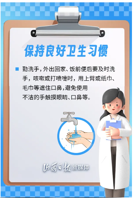冬季雨雪增多,氣溫下降,新冠病毒、流感病毒、肺炎支原體等多病原引起的呼吸道傳染病風(fēng)險(xiǎn)上升。 為保護(hù)公眾身體健康,有效應(yīng)對(duì)傳染病疫情,山西省衛(wèi)健委、省疾控局溫馨提示,建議公眾加強(qiáng)個(gè)人防護(hù),科學(xué)佩戴口罩,保持良好衛(wèi)生習(xí)慣,健康安全度過這個(gè)冬季。