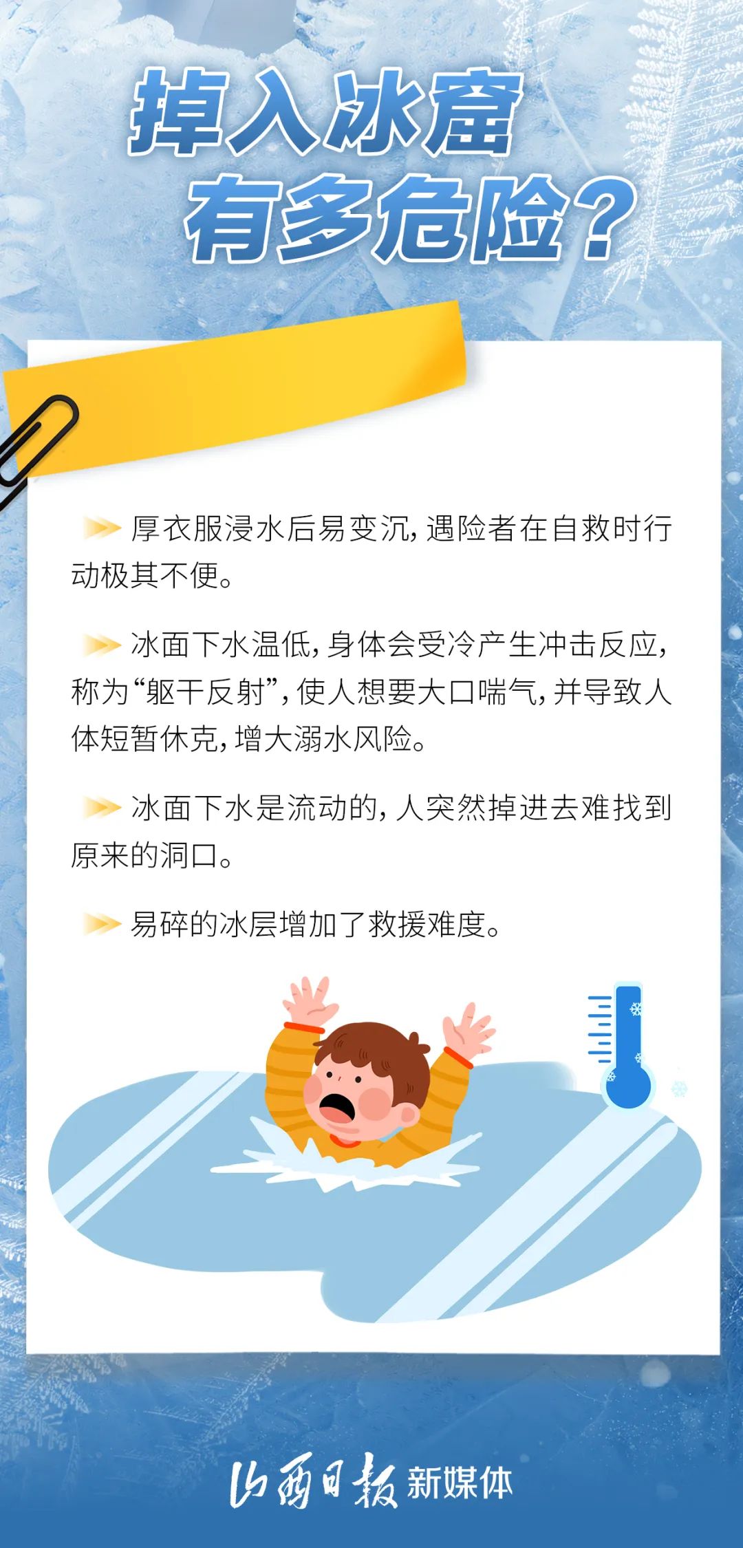 掉進(jìn)冰窟窿有多危險?不幸掉進(jìn)冰窟窿里該如何自救?一起來了解關(guān)鍵時刻能救命!
