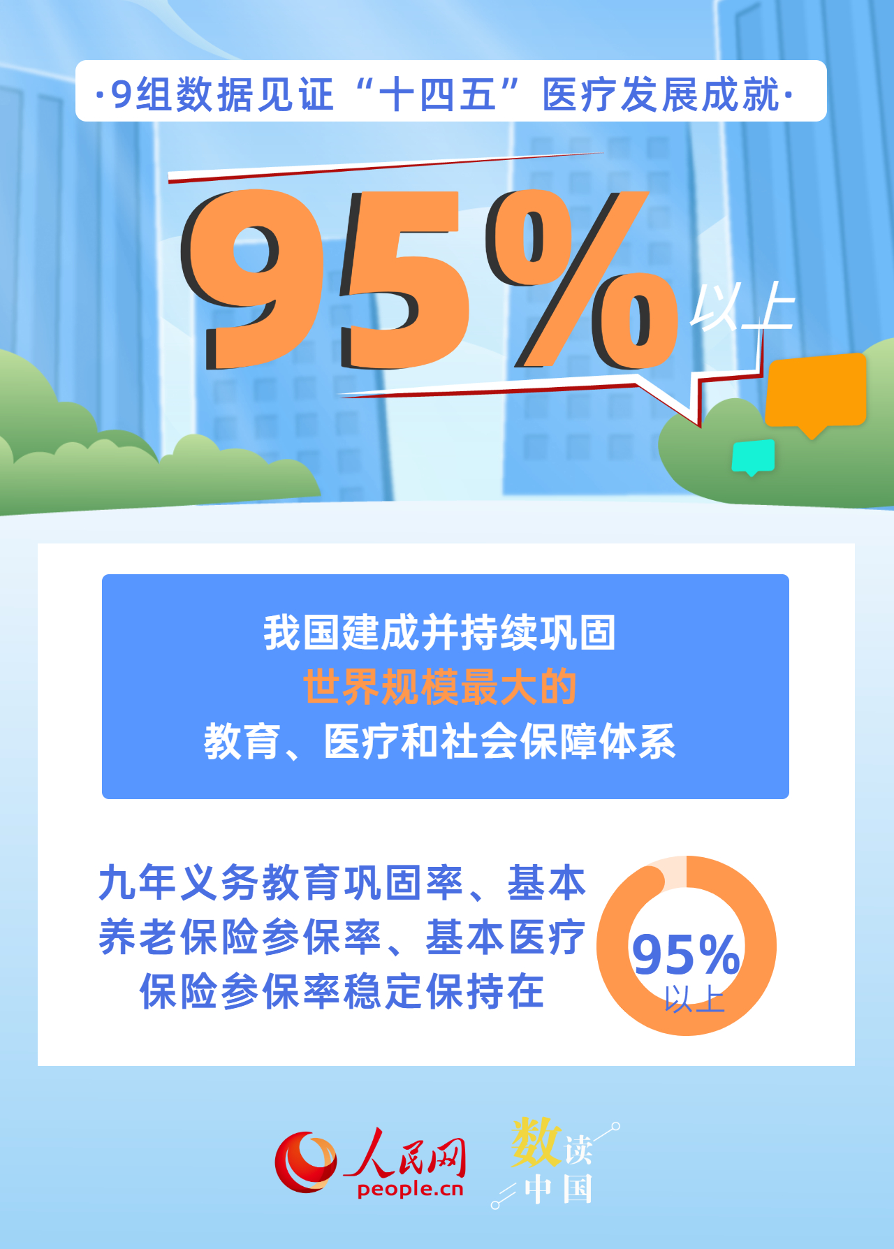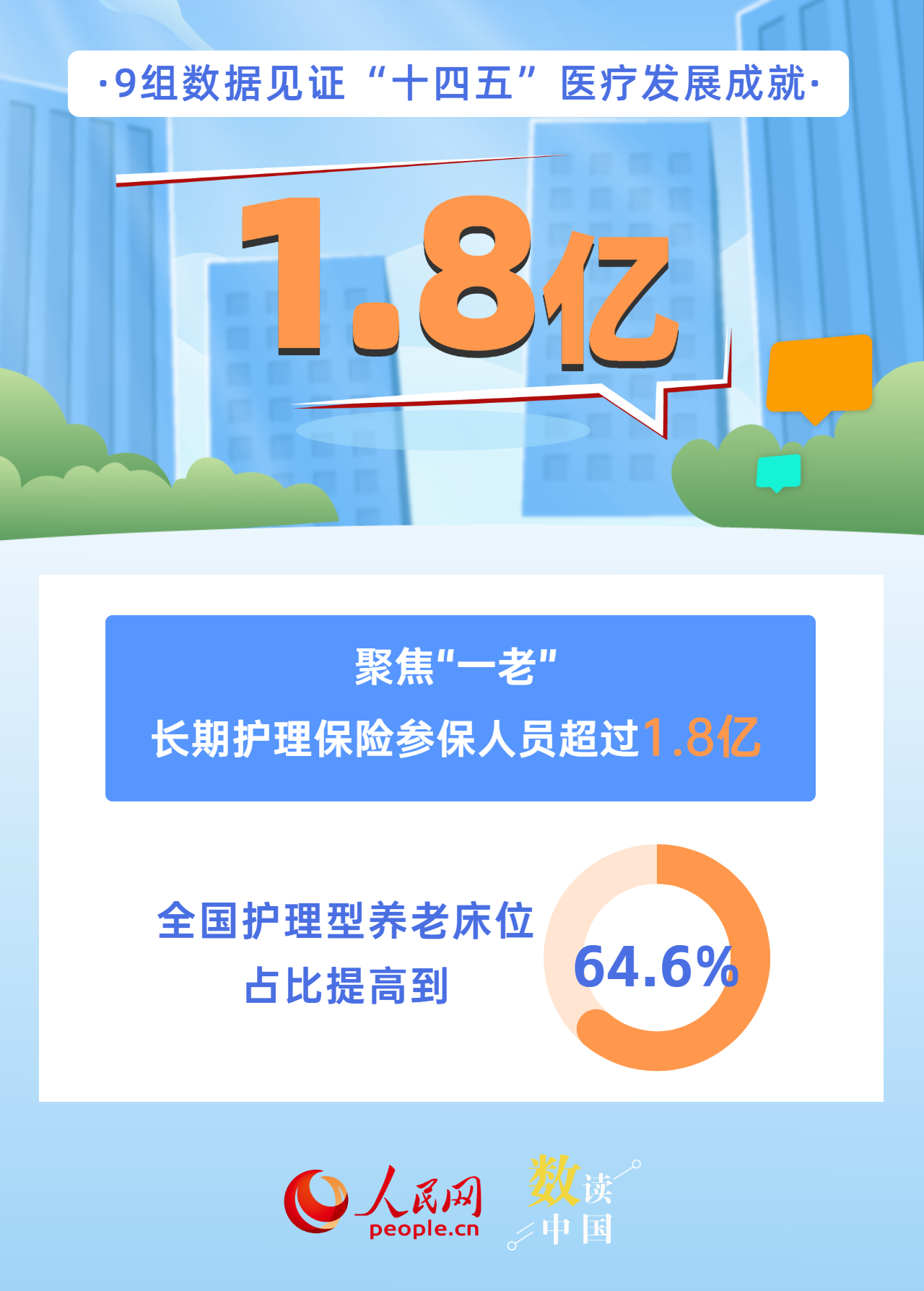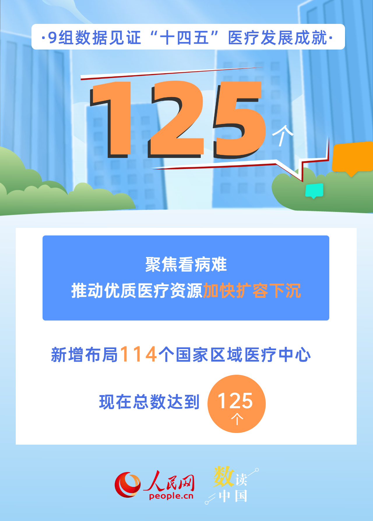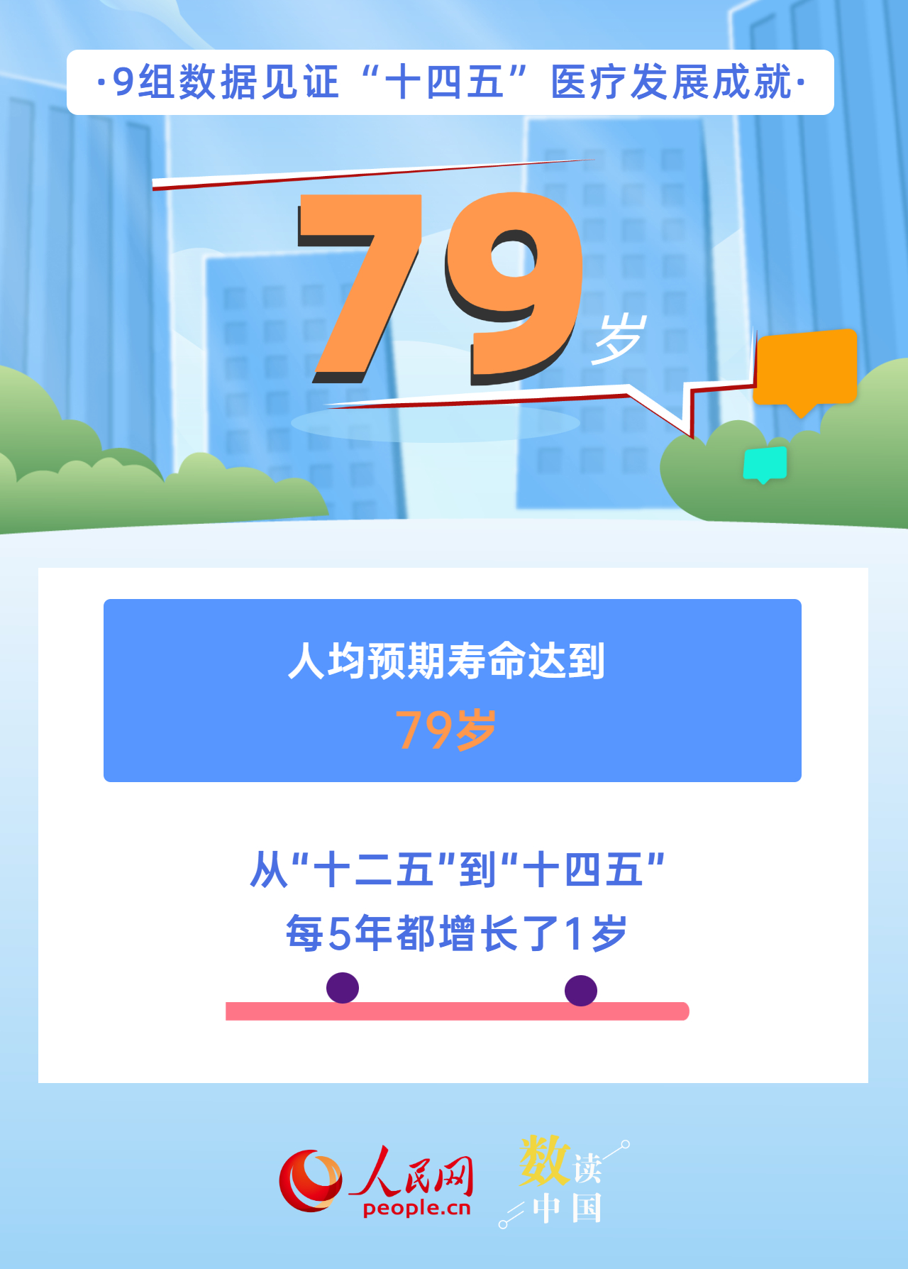 新增布局114個國家區(qū)域醫(yī)療中心、全國跨省異地就醫(yī)直接結(jié)算惠及4億多人次、人均預(yù)期壽命達到79歲、402種藥品新增進入國家醫(yī)保藥品目錄……今年是“十四五”規(guī)劃收官之年,“十四五”時期,我國醫(yī)療衛(wèi)生事業(yè)發(fā)展取得哪些成就?一組海報帶你用數(shù)字感知。