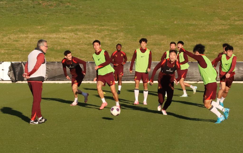 10月9日,中國隊球員拜合拉木(中)在訓(xùn)練中。新華社發(fā)(謝思達 攝) 從打法上看,國足的機會在哪里?接連負于韓國(36強階段)、日本以及沙特隊后,澳大利亞隊是國足短短四個月內(nèi)交手的第四支亞洲區(qū)強隊。無法有效控球,是目前任何人都難以改變的現(xiàn)狀,加之對陣沙特隊時連丟定位球的慘痛教訓(xùn),這支國足現(xiàn)在顯然需要統(tǒng)一思想,重點做好角球、任意球場景中的防守以及提高反擊中的成功率。 陣容方面,澳大利亞隊主要更新了中前場。他們憋著前兩場不勝的一口氣,勢必會對國足后防線發(fā)起猛烈沖擊。不出意外的話,國足依然會放低姿態(tài),扎緊籬笆、全力防守,蔣光太與蔣圣龍的中衛(wèi)組合勢必片刻不能松懈,邊后衛(wèi)以及中場球員也要提供足夠的保護,前場的韋世豪、拜合拉木以及費南多等攻擊手如果能夠打出火力、形成牽制,將會為本方后防線減輕不少壓力。