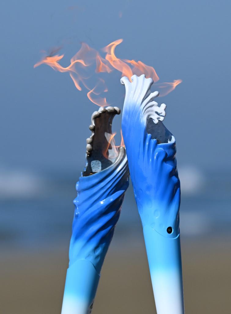 滿滿的科技感是本屆運動會的一大亮點。在此前進(jìn)行的采火儀式上,以可燃冰作為燃料的火炬科技感拉滿,大放異彩?!疤剿鞫枴笨瓶即瑸楸緦眠\動會采集的可燃冰,由潛航員通過保壓取樣器采集并帶回陸地?;鹁嬖O(shè)計團(tuán)隊表示,這象征科技的力量,也寓意海南自貿(mào)港發(fā)展的無限潛力。