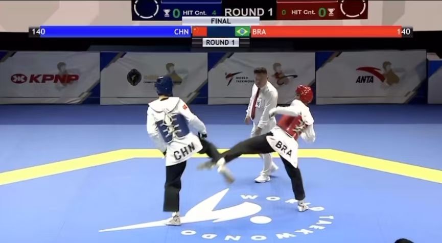 決賽首局比賽,中國(guó)隊(duì)肖樹(shù)楠以一個(gè)腹部踢擊得分加對(duì)手出界拉開(kāi)分差,占據(jù)優(yōu)勢(shì)后中國(guó)隊(duì)持續(xù)迎擊,以能量值130:70獲勝。第二局中國(guó)隊(duì)開(kāi)場(chǎng)防守松懈,被扣掉40分(能量值),盡管后程中國(guó)隊(duì)加強(qiáng)攻勢(shì),還是以能量值65:75不敵對(duì)手。在決勝局中,巴西隊(duì)兩記直拳打開(kāi)局面,能量值占優(yōu),此后雖然巴西隊(duì)兩次被判消極進(jìn)攻,但中國(guó)隊(duì)未能把握住機(jī)會(huì),最終以能量值110:115輸?shù)舻谌郑蟊确?:2告負(fù)。