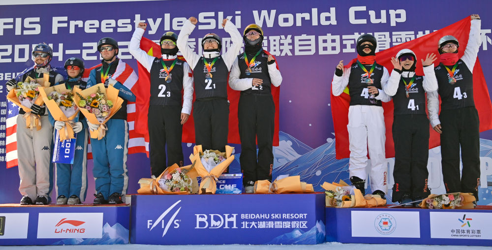 新華社長春2月24日電(記者李典、顏麟蘊)2024-2025賽季自由式滑雪空中技巧世界杯北大湖站24日落幕,中國隊共收獲3金2銀1銅。在當日進行的混合團體比賽中,由徐夢桃、齊廣璞、李天馬組成的中國一隊獲得金牌,由陳梅婷、王心迪、李心鵬組成的中國二隊摘銅。