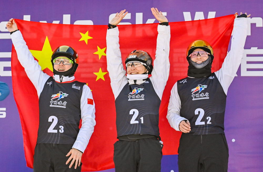 2月22日,2024-2025賽季國際雪聯(lián)自由式滑雪世界杯(北大湖站)雪上技巧女子雙人比賽在吉林市北大湖滑雪度假區(qū)舉行。新華社記者 顏麟蘊(yùn) 攝