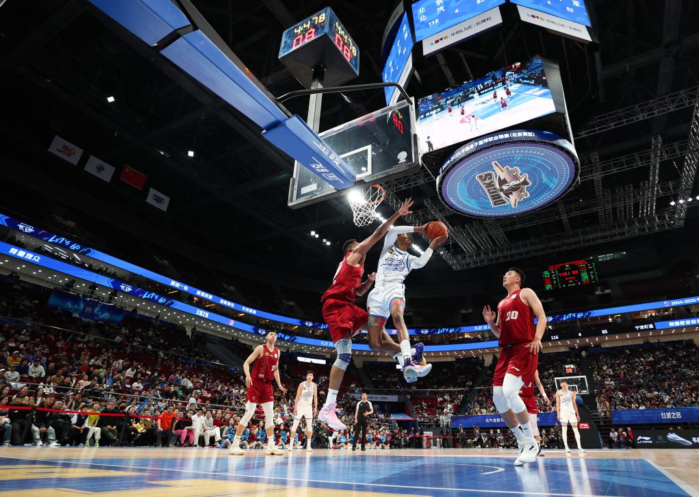 3月14日,在2024-2025賽季中國(guó)男子籃球職業(yè)聯(lián)賽(CBA)常規(guī)賽第40輪比賽中,北京北汽隊(duì)主場(chǎng)127比92戰(zhàn)勝寧波町渥隊(duì)。新華社記者 王楷焱 攝