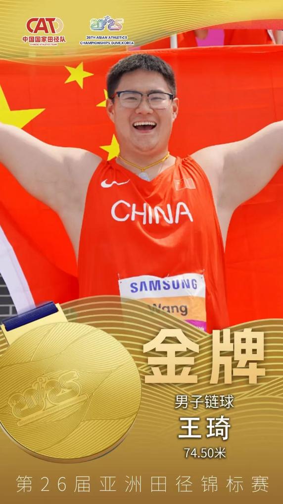 當(dāng)日上午率先進行的男子鏈球決賽中,中國隊名將王琦以74米50的成績力壓兩名日本選手奪冠。女子1500米比賽中,“00后”選手李春輝以4分10秒58的成績奪冠,大幅提升個人最好成績。此外,女子撐桿跳高比賽中,中國隊選手牛春格以4米48的成績奪冠,她的隊友徐惠琴收獲銀牌。男子十項全能比賽中,費翔以7634分為中國隊再添一金。