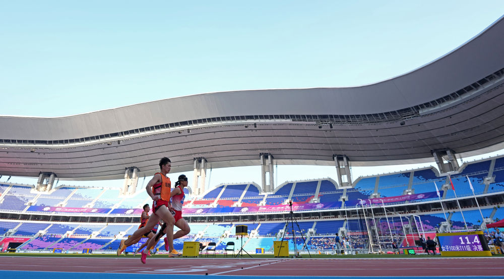 當(dāng)日,伴隨著提振人心的醒獅表演,田徑、聾人籃球等項(xiàng)目都在簡(jiǎn)短的開(kāi)賽儀式后進(jìn)入競(jìng)賽環(huán)節(jié)。在廣東省奧體中心體育場(chǎng)舉行的田徑比賽傳來(lái)捷報(bào),巴黎殘奧會(huì)兩銀得主、山東選手郭芊芊在女子400米T35級(jí)比賽中,以超世界紀(jì)錄、破全國(guó)紀(jì)錄的1分14秒65率先沖線(xiàn)。兩屆殘奧會(huì)冠軍、陜西隊(duì)的董飛霞在女子鉛球F55級(jí)比賽中摘下桂冠。在她的鼓勵(lì)下,陜西隊(duì)當(dāng)天一共獲得6枚田徑金牌。