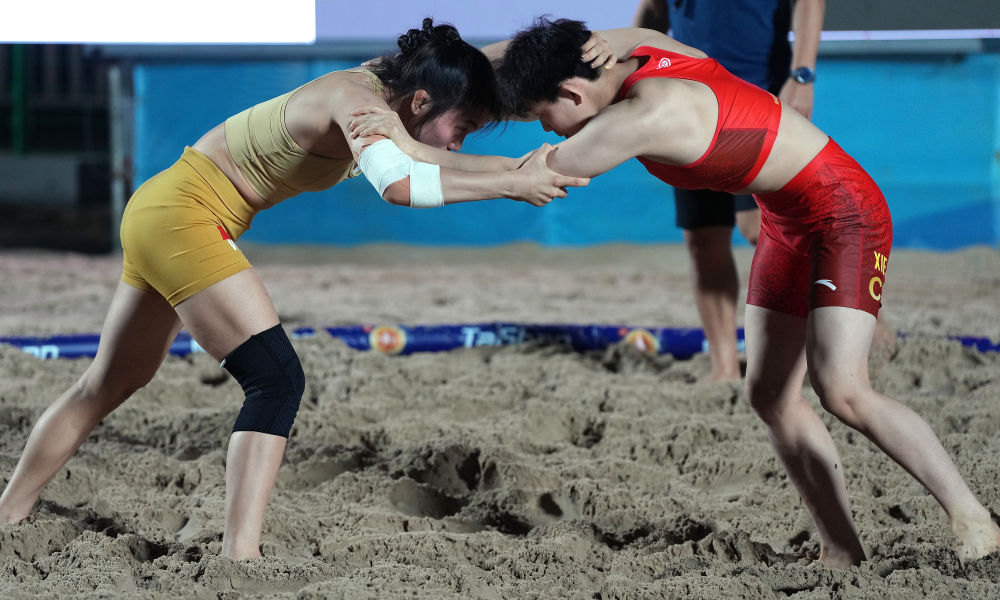 “感覺參賽選手的技戰(zhàn)術(shù)準(zhǔn)備和體能儲備都很充分,這激發(fā)我要拿出更好的狀態(tài)。”龍佳說,她和不少隊友都是首次參加沙灘摔跤比賽,十分享受比賽過程,期待在決賽中取得好成績?!斑@項比賽規(guī)則更加簡單,適合朋友間三三兩兩在沙灘上角逐?!彼€希望通過沙灘摔跤比賽讓更多人接觸并喜愛摔跤運動。