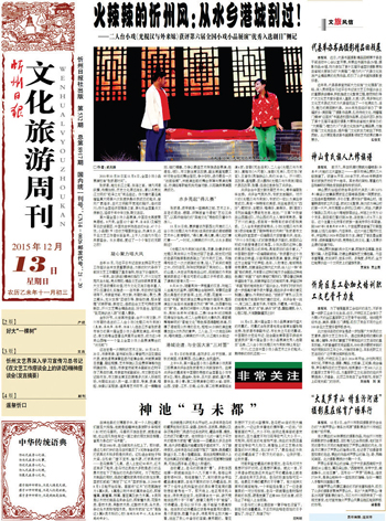 由忻州市文聯(lián)、忻州市劇協(xié)選送的二人臺(tái)小戲《光棍漢與外來妹》(表演:呂改萍、張璟、任浩)入選在江蘇省張家港市舉辦的第六屆全國小戲小品展覽演出,將與郭達(dá)、李文啟等全國著名笑星同臺(tái)競(jìng)技,成為近3年來山西唯一一個(gè)登上全國小戲小品展演舞臺(tái)的“狀元郎”!