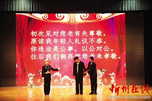 1月27日至29日,偏關(guān)縣公安局交警大隊(duì)交通安全文藝宣傳隊(duì)在隊(duì)長(zhǎng)們的帶領(lǐng)下,先后走進(jìn)市實(shí)驗(yàn)中學(xué)、市客運(yùn)中心、國家電網(wǎng)忻州供電分公司進(jìn)行了三場(chǎng)演出,用自編自導(dǎo)自演、群眾喜聞樂見的“漫翰調(diào)”、“二人臺(tái)”、北路梆子、民歌等一系列極具地域文化特色的地方小戲、說唱歌舞等曲藝形式進(jìn)行宣傳演出,贏得滿堂喝彩,場(chǎng)場(chǎng)掌聲雷動(dòng)。作為春節(jié)回家路上的一道文化盛宴,這次春節(jié)前的平安出行警示教育“送安全下鄉(xiāng)”巡演是我市公安交警精心策劃、編排的春運(yùn)交通安全宣傳行動(dòng)之一。28日,市客運(yùn)中心人頭攢動(dòng),熙熙攘攘,大廳外懸掛的橫幅標(biāo)語“守護(hù)您的平安出行,保障道路安全暢通是每一位交警的神圣職責(zé)!”格外醒目。候車大廳里,暖意融融,市公安局交警支隊(duì)組織的春運(yùn)交通安全文藝演出正在進(jìn)行,交警版的民間小調(diào)《拜大年》、小品《警鐘聲聲》、雙簧《二愣子》等節(jié)目令人賞心悅目、捧腹不止。在歡笑之余,提醒和教育廣大群眾自覺抵制不文明、不安全交通行為,觀看演出的旅客和客車司機(jī)紛紛感慨,這樣的宣傳教育生動(dòng)形象,人人愛看且耐人尋味,警示作用很大。