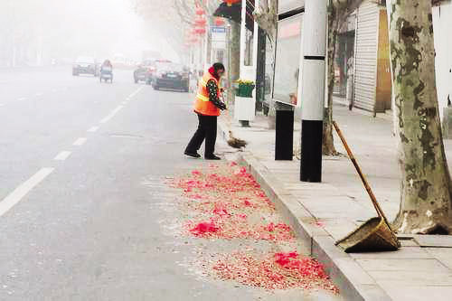 45歲的環(huán)衛(wèi)工張秀生告訴筆者,“越是節(jié)假日,越不能停歇,把路面收拾得干干凈凈,老百姓走著舒坦,我心里也高興?!边@幾天風大天冷,張師傅卻干得特別有勁。不到2個小時,城區(qū)健康中街周邊的垃圾全部清理干凈?!白蠲Φ臅r候就是下午四五點鐘,路上的垃圾數量明顯增加?!睆垘煾嫡f,有時他一直忙到晚上6點才回家,第二天早上,不到4點他就從床上爬起來了。據悉,春節(jié)期間,城區(qū)的環(huán)衛(wèi)工人基本全部在崗,許多環(huán)衛(wèi)工人甚至提前到崗清掃街道,確保市容整潔。張師傅希望市民們春節(jié)燃放鞭炮時不僅要注意安全,還要保護環(huán)境衛(wèi)生。