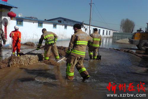 消防官兵到達現(xiàn)場,經(jīng)現(xiàn)場詢問和偵察,了解到:由于該村外農(nóng)田冬季澆水太多造成冰凍,近期氣溫回升使田地里凍結(jié)積水溶解,位于田地東北部一養(yǎng)牛場地勢低洼,冰解融水全部灌入養(yǎng)牛場,情況十分危急,中隊指揮員迅速與養(yǎng)牛場負責(zé)人聯(lián)系村民鏟車進行填堵,同時命令中隊?wèi)?zhàn)斗員利用鐵鍬進行堵截,在經(jīng)過大約20分鐘的迅速搶救,最終排除險情,幫村民挽回了巨大的經(jīng)濟損失。最后在與養(yǎng)牛場負責(zé)人交接好手續(xù)確定無險情后,中隊全體指戰(zhàn)員收整器材返回中隊,特勤中隊官兵快速處置,不怕苦、不怕累的精神贏得了在場群眾的一致好評。(張志遠 白耀周)