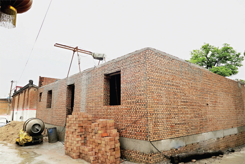 7月20日上午,記者驅(qū)車(chē)來(lái)到忻府區(qū)解原鄉(xiāng)北趙村。在一個(gè)緊鄰村委會(huì)北側(cè)的逼仄巷子里,記者見(jiàn)到了這棟已經(jīng)停工的紅磚房。一層和地下室主體已經(jīng)建成,修葺齊整的墻面與周?chē)耐岭A茅屋形成了鮮明的對(duì)比,沙子、攪拌機(jī)堆放在旁邊,讓本就不寬敞的巷子顯得更加擁擠不堪。