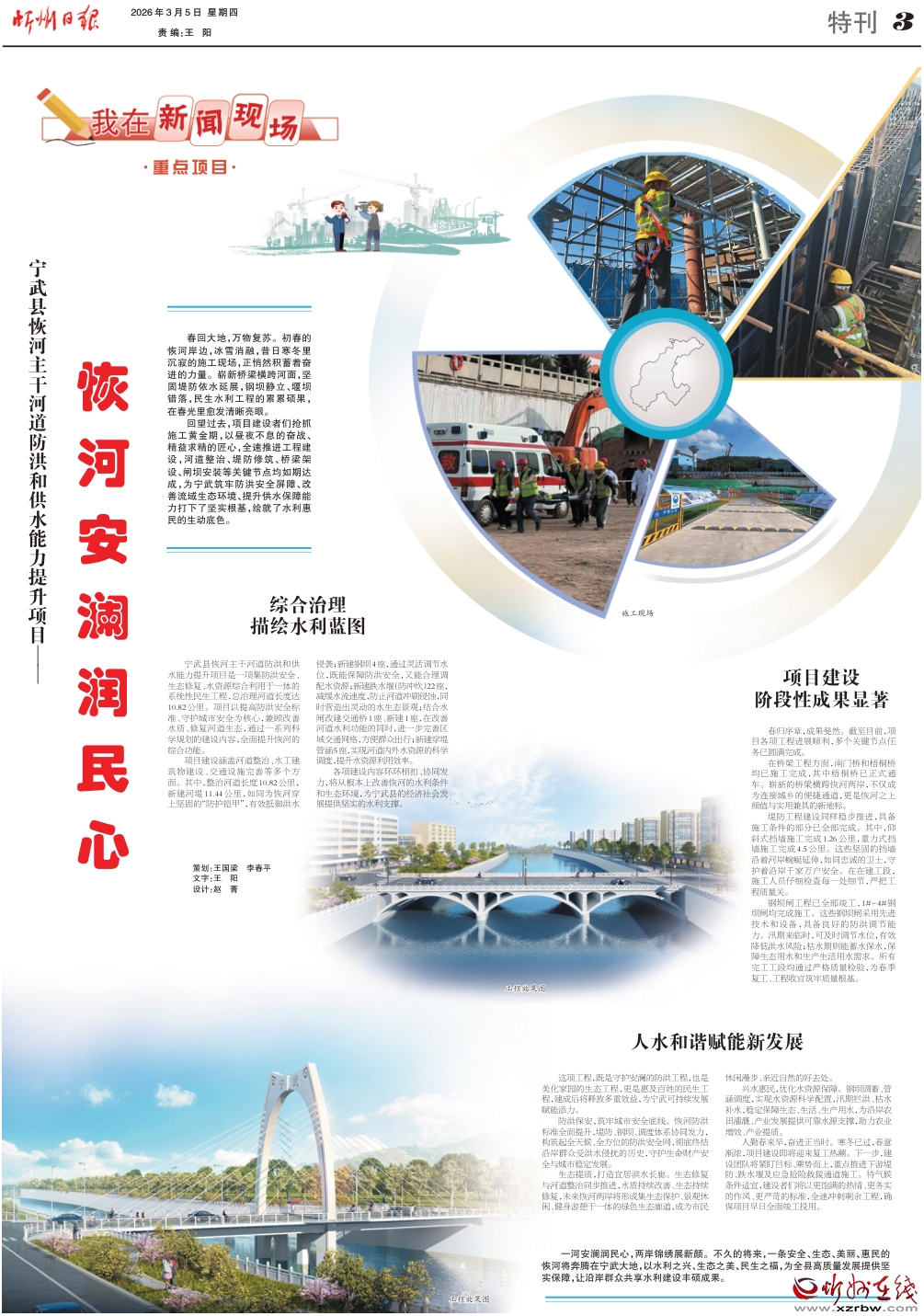 一河安瀾潤民心,兩岸錦繡展新顏。不久的將來,一條安全、生態(tài)、美麗、惠民的恢河將奔騰在寧武大地,以水利之興、生態(tài)之美、民生之福,為全縣高質(zhì)量發(fā)展提供堅(jiān)實(shí)保障,讓沿岸群眾共享水利建設(shè)豐碩成果。