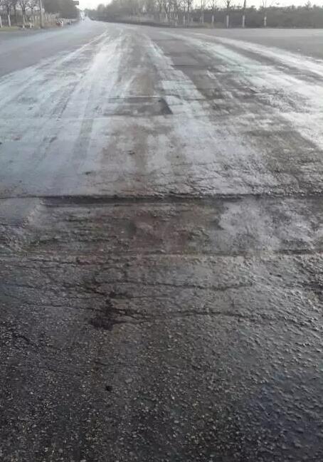 該處路面破爛不堪是由于大貨車在等待紅燈期間,輪胎散熱設備不停地對路面灑水造成的,我段多次對該路段進行修補,但長時間灑水造成了前修后壞、路況差的惡性循環(huán)。待氣溫回升后,我段會采取適當措施對該路段及時進行全面處置。