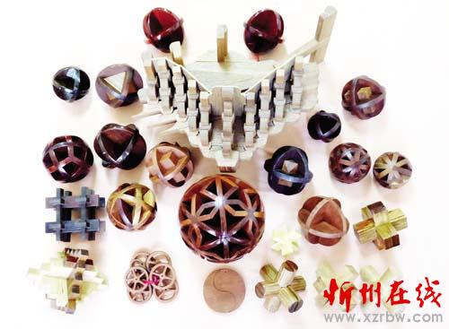卯竅傳奇——五十六民族大團(tuán)結(jié):是用56塊木頭做的一個(gè)球體,每一塊木頭都是用卯竅連接,卯竅結(jié)構(gòu)異常復(fù)雜。外形為祿福圖案,寓意56個(gè)民族大團(tuán)結(jié),天祿地祿人間福。它的種類(lèi)有80多種,做一個(gè)得兩個(gè)多月的時(shí)間。