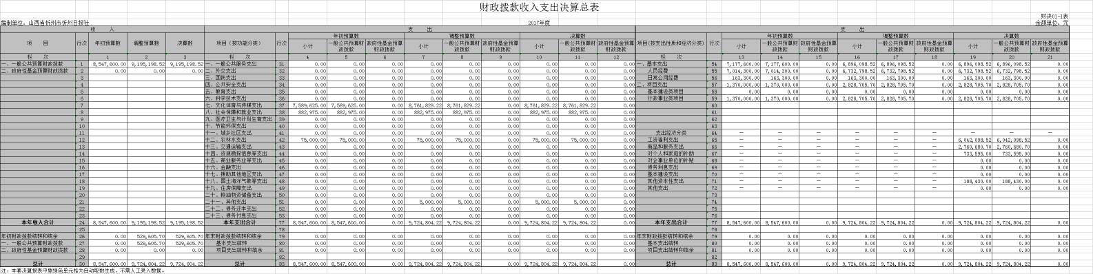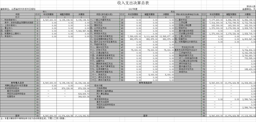 二、2017年度部門決算報表