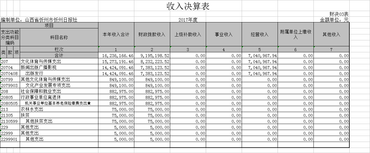 忻州日報社是一級預(yù)算單位,無下屬單位。部門決算只有一個單位,即忻州日報社。
