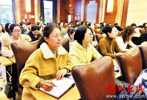本報(bào)訊為落實(shí)推進(jìn)“家家幸福安康工程”,幫助家長(zhǎng)系統(tǒng)學(xué)習(xí)家庭教育知識(shí),12月18日,由忻州市婦聯(lián)舉辦的家庭教育培訓(xùn)班隆重開班。市縣兩級(jí)婦聯(lián)工作人員、機(jī)關(guān)及企事業(yè)單位婦委會(huì)工作人員等200余人參加培訓(xùn)。