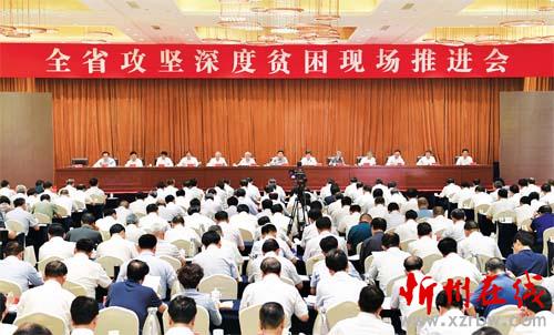 山西日報(bào)訊(記者尚慧輝)6月19日,省委在忻州召開全省攻堅(jiān)深度貧困現(xiàn)場推進(jìn)會(huì),也是省委中心組擴(kuò)大的專題學(xué)習(xí)會(huì)。會(huì)議以習(xí)近平扶貧思想為指導(dǎo),分析一年來全省攻堅(jiān)深度貧困形勢,堅(jiān)持目標(biāo)和問題導(dǎo)向,激勵(lì)干部更好擔(dān)當(dāng)作為,強(qiáng)化精準(zhǔn)用力舉措,下足繡花功夫,為堅(jiān)決打贏脫貧攻堅(jiān)戰(zhàn)奠定扎實(shí)基礎(chǔ)。省委書記駱惠寧出席會(huì)議并講話,他強(qiáng)調(diào),要認(rèn)真學(xué)習(xí)貫徹習(xí)近平總書記對(duì)打贏脫貧攻堅(jiān)戰(zhàn)三年行動(dòng)的重要指示,按照中央指導(dǎo)意見及省委部署,咬定總攻目標(biāo),落細(xì)攻擊點(diǎn)位,完善督戰(zhàn)機(jī)制,奪取戰(zhàn)役全勝。打贏三年脫貧攻堅(jiān)戰(zhàn),必須牢牢抓住主要矛盾、聚焦深度貧困,做到焦點(diǎn)不散、靶心不變,持續(xù)用力、盡銳出戰(zhàn),以攻堅(jiān)深度貧困帶動(dòng)面上扶貧工作。國務(wù)院扶貧開發(fā)領(lǐng)導(dǎo)小組副組長、國務(wù)院扶貧辦主任劉永富出席會(huì)議并講話。省委副書記、省長樓陽生主持會(huì)議。