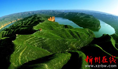 老牛灣是一座三面臨水的半島,在緊臨黃河的山崖上,有一座高達(dá)23米的望河樓,600年間雄踞高崖、俯視黃河,閱盡古今滄桑。如今隨著萬家寨水利樞紐工程勝利蓄水,滔滔黃河從萬家寨到老牛灣形成了一條長達(dá)70公里的蔚藍(lán)飄帶,長城到老牛灣之后,繼續(xù)順河南下,經(jīng)萬家寨、關(guān)河口至河曲樓子營而止,逶迤相伴達(dá)百余里。