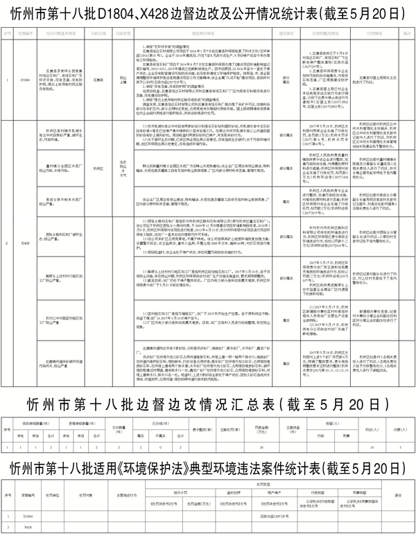 我市高度重視,立即組織查處,截至5月20日,督辦的4件和續(xù)報(bào)的2件群眾反映問題已辦結(jié)。其中,確認(rèn)部分屬實(shí)5件;確認(rèn)不屬實(shí)1件。對于部分屬實(shí)已辦結(jié)的環(huán)保問題,分別采取了相應(yīng)處理措施,其中罰款39.3萬元,對30名相關(guān)責(zé)任人進(jìn)行了約談,對7名相關(guān)責(zé)任人進(jìn)行了黨紀(jì)政紀(jì)處分。對6件群眾反映問題調(diào)查處理情況進(jìn)行了信息公開。