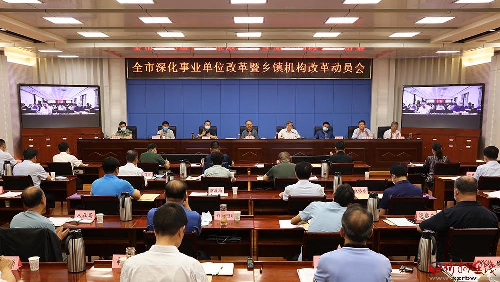 全市深化事業(yè)單位改革暨鄉(xiāng)鎮(zhèn)機(jī)構(gòu)改革動(dòng)員會(huì)會(huì)場(chǎng)。范濤 攝