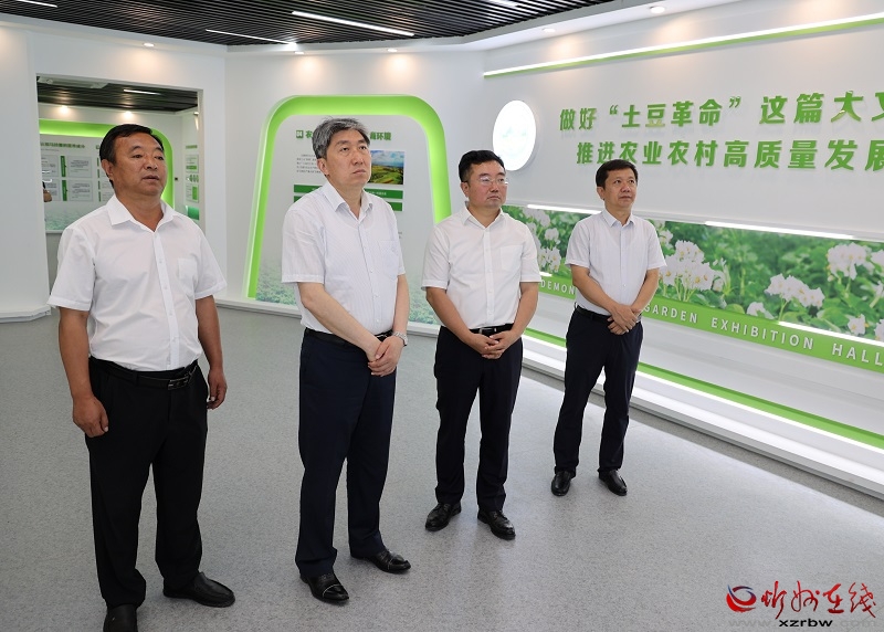 在安子村和張家坪村全面察看現(xiàn)代加工型馬鈴薯種植基地、萬畝谷子種植基地高標準農(nóng)田建設,聽取“機田證”一體化實踐和新型合作模式探索情況后,朱曉東強調(diào),農(nóng)民是現(xiàn)代農(nóng)業(yè)產(chǎn)業(yè)鏈的基礎環(huán)節(jié),大力發(fā)展特色產(chǎn)業(yè),是促進農(nóng)民收入穩(wěn)定增長的關鍵,要完善利益聯(lián)結機制,吸引更多農(nóng)戶投入現(xiàn)代農(nóng)業(yè)發(fā)展,切實抓住“機、地、人”的主要矛盾,解決好現(xiàn)代農(nóng)業(yè)“誰來種地、怎么種好地”的問題。要在農(nóng)業(yè)高新技術產(chǎn)業(yè)化應用上做出示范,堅持向科技要效益,突出農(nóng)機農(nóng)藝結合,注重“糧頭食尾”“農(nóng)頭工尾”銜接,在現(xiàn)代化設施農(nóng)業(yè)發(fā)展上不斷取得新突破,真正實現(xiàn)疊加效應,實現(xiàn)農(nóng)業(yè)生產(chǎn)效益倍增,全面推進鄉(xiāng)村振興。