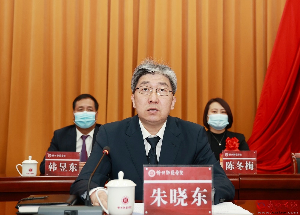 朱曉東指出,長期以來,忻州師院在黨委的堅強領導下,凝心聚力肩負新使命,集思廣益展現(xiàn)新業(yè)績,培養(yǎng)了一批又一批思想素質高、業(yè)務技能好、實踐能力強的優(yōu)秀中小學教師和建設人才,在服務地方經(jīng)濟社會發(fā)展中提供了忻師智慧、彰顯了忻師力量、作出了忻師貢獻。希望忻州師院立足忻州、胸懷天下,把握大勢、放眼未來,向著建設特色鮮明、國內知名的高水平應用型師范大學這一目標持續(xù)前進。一是要強化黨的領導,始終把黨的政治建設擺在首位,認真落實管黨治黨、辦學治校的主體責任,全面加強黨的各項建設,不斷推進黨的建設新的偉大工程,為實現(xiàn)學院發(fā)展藍圖提供堅強的政治和組織保證。二是要強化奮進意識,深入學習貫徹習近平總書記關于教育工作的重要論述和全國教育大會精神,認真落實立德樹人根本任務,持續(xù)實施“1233”發(fā)展戰(zhàn)略,特別是要厚植辦學情懷,深化改革創(chuàng)新,彰顯本土特色,做強優(yōu)勢學科,強化交流協(xié)作,實現(xiàn)城市與學校的交相輝映、共進共榮。三是要強化服務意識。師院新校區(qū)建成使用,表明了市委、市政府一以貫之興教育、強教育的鮮明態(tài)度,更是為忻州師院的明天加油鼓勁。希望忻州師院進一步強化服務意識,與區(qū)域發(fā)展布局同頻共振,在服務中心大局中精準發(fā)力,著力提升服務地方經(jīng)濟社會發(fā)展的能力和水平,為忻州全方位推動高質量發(fā)展作出新的更大貢獻。市委、市政府將一如既往地把教育擺在優(yōu)先發(fā)展的戰(zhàn)略位置,一如既往地支持忻州師院的建設和發(fā)展,讓忻州師院越辦越好。