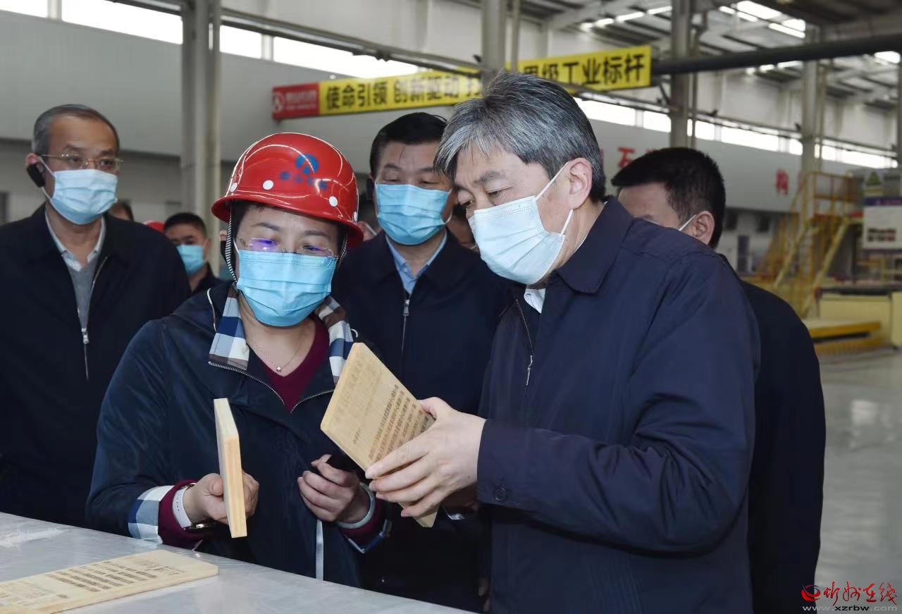 泰山石膏忻州有限公司產(chǎn)銷量均居同行業(yè)首位,被譽(yù)為中國紙面石膏板行業(yè)的領(lǐng)跑者。朱曉東深入企業(yè)車間宣講黨的二十屆二中全會和習(xí)近平總書記在全國兩會期間重要講話及全國兩會精神,聽取負(fù)責(zé)人工作匯報,詳細(xì)了解項(xiàng)目建設(shè)、企業(yè)生產(chǎn)經(jīng)營、產(chǎn)品研發(fā)、安全生產(chǎn)等方面的情況。他指出,要把學(xué)習(xí)貫徹黨的二十屆二中全會精神與學(xué)習(xí)宣傳貫徹黨的二十大精神結(jié)合起來,與貫徹落實(shí)全國兩會精神結(jié)合起來,在學(xué)深悟透、宣講培訓(xùn)、知行合一上持續(xù)用力,深刻理解和準(zhǔn)確把握習(xí)近平總書記關(guān)于“牢牢把握高質(zhì)量發(fā)展這個首要任務(wù)”和“四個必須”的重要論述,深入落實(shí)“三個更好統(tǒng)籌”,確保黨的二十大精神在忻州落地生根、開花結(jié)果。